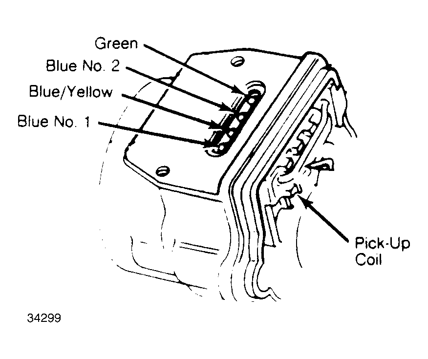 - Using an ohmmeter, measure resistance between "G" and No. 2 Blue wire on pick-up coil. Pick-up coil resistance is 650-850 ohms at 70°F (20°C).
