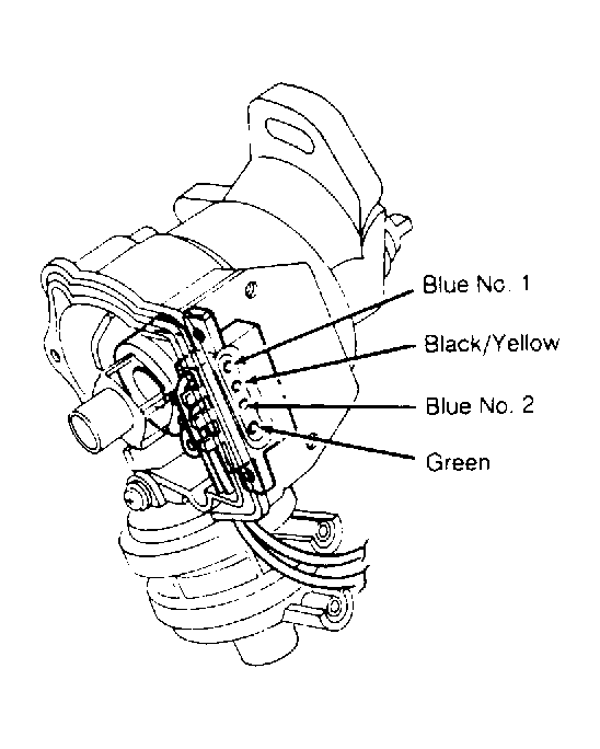 - Turn ignition off. Remove distributor cap. Remove 2 screws to disconnect Black/Yellow and White/Blue wires from terminals "A" and "B", respectively. See Fig 1.