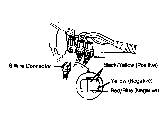 - If no battery voltage was present in step 7), measure voltage between Black/Yellow terminal and body ground. If battery voltage is not present, repair open in Black/Yellow wire between 6-wire connector and No. 9 fuse.