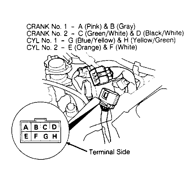 - If CHECK ENGINE light is flashing Code 4, turn ignition off. Disconnect 8-pin CRANK/CYL sensor connector nearest sensor. Measure resistance across Pink and Gray terminals at sensor. See Fig 1 . If reading is not 650-900 ohms, replace sensor. If reading is within specification, go to next step.