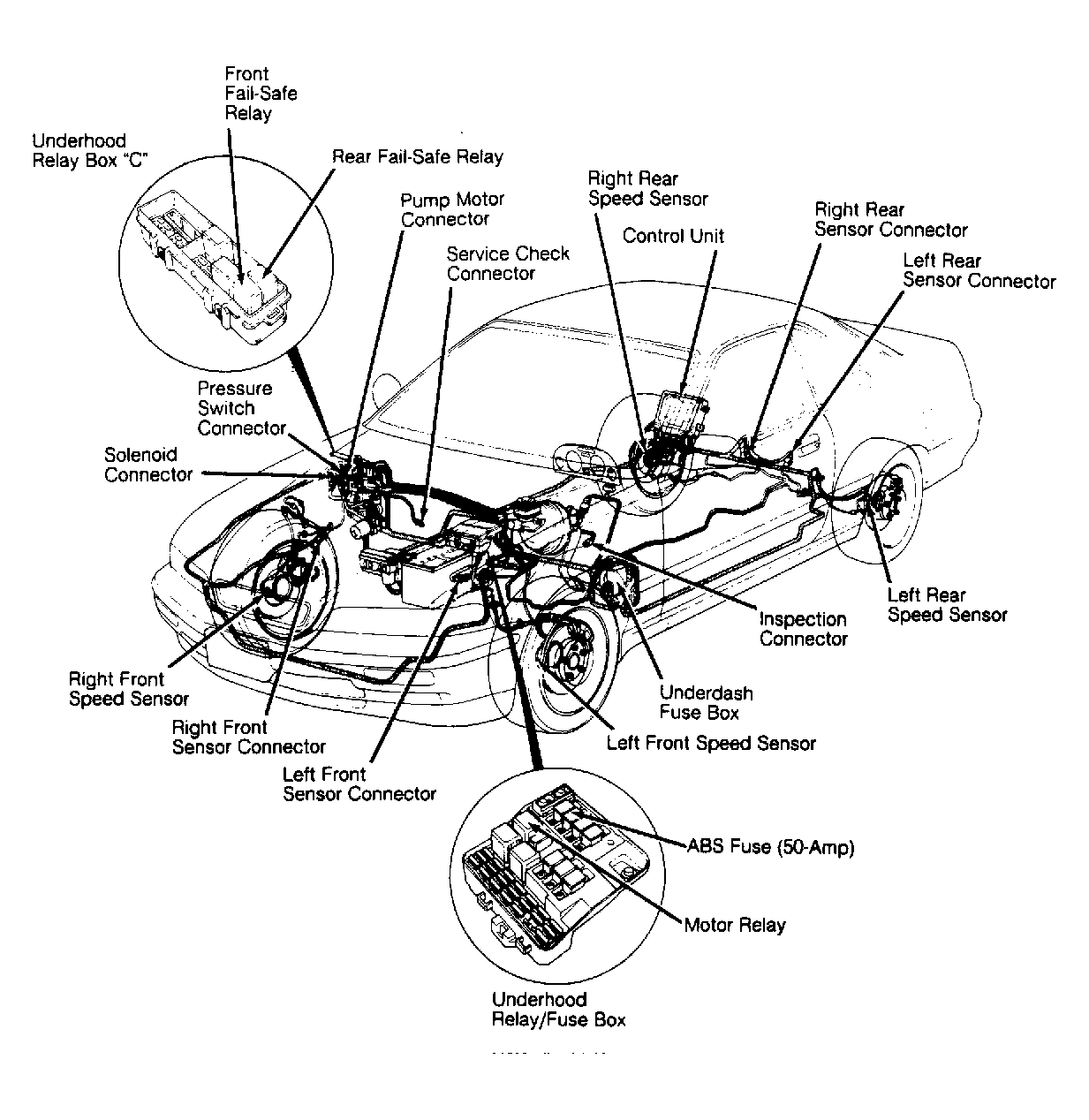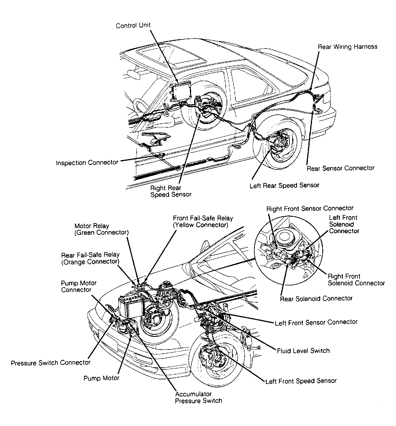 - Turn ignition switch to OFF position. Connect ABS Tester (07HAJ-SG00100) to 6-pin inspection connector. See Figure , Figure or Figure . Start engine. Release parking brake. Place mode selector to "1" position. Push START TEST button. TEST-IN-PROGRESS light should come on. Within 1-2 seconds, 4 monitor lights should come on. If tester lights do not come on, ABS tester is faulty.