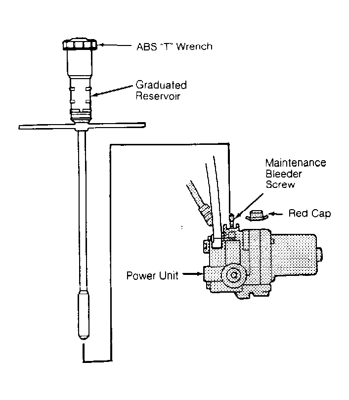 - Fill modulator reservoir to MAX level. Bleed high-pressure fluid from maintenance bleeder screw. See Figure or Figure . Start engine, and release parking brake. Turn ABS tester mode selector to "2", "3", "4" and "5" positions. Depress brake pedal firmly and press START TEST button. At least 2 strong kickbacks should be felt from brake pedal. If kickbacks are not felt, repeat this step.