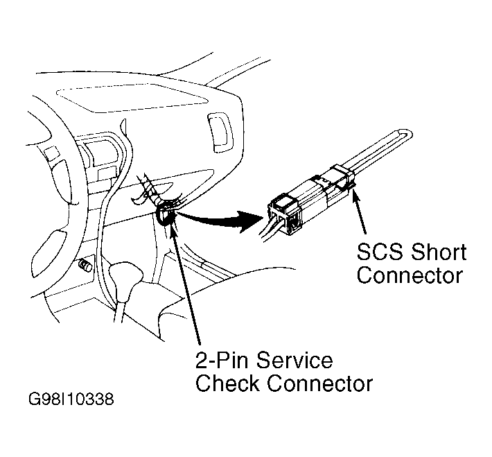 - If light remains on, turn engine off. Disconnect service check connector from connector cover located under glove box. See Fig 1 . Connect jumper wire between the two service check connector terminals.