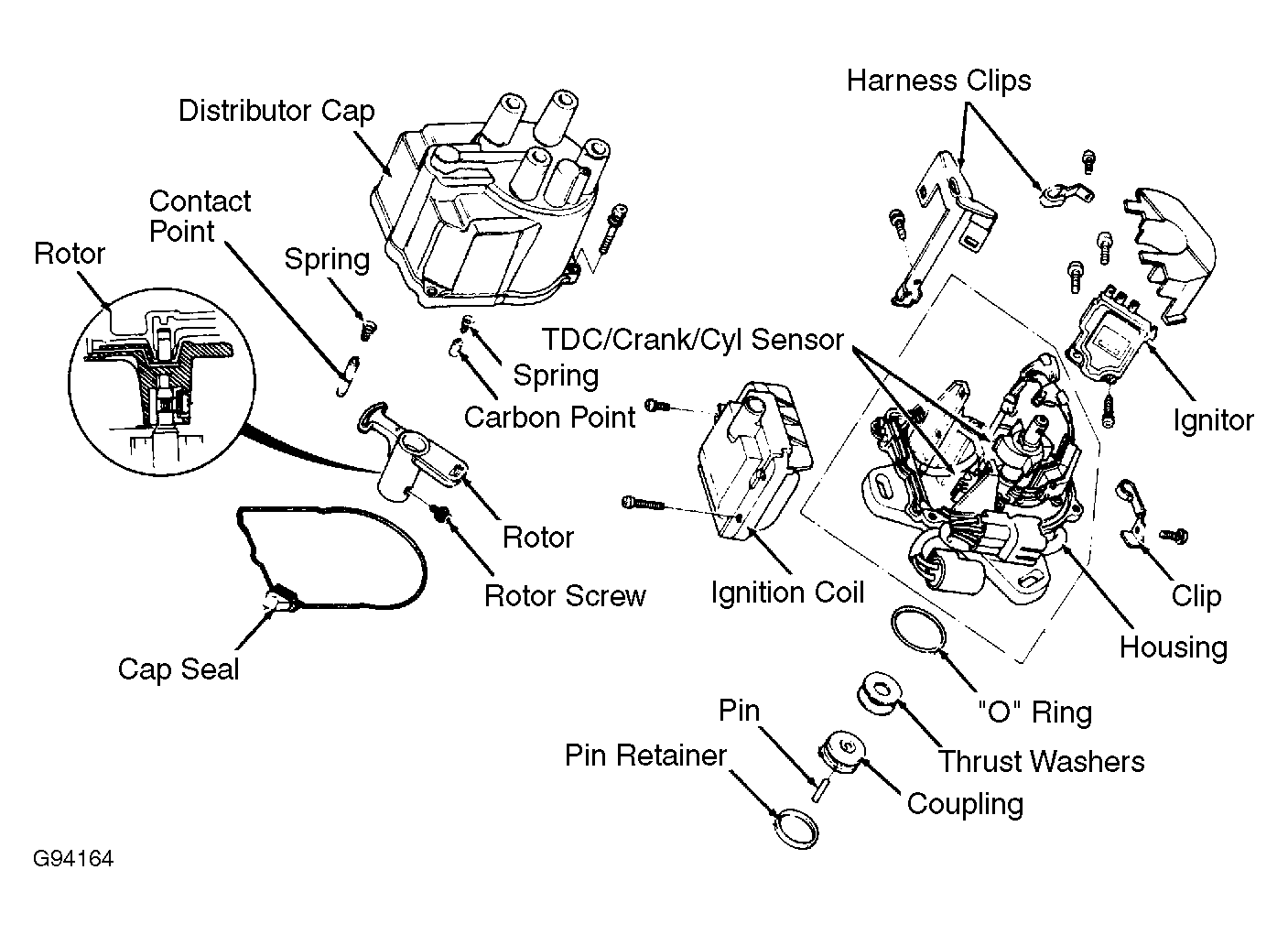 - Lubricate and install new "O" ring. See Fig 1. Install distributor, aligning reference marks. Align distributor coupling with slot in camshaft. Connect wiring. Adjust ignition timing.