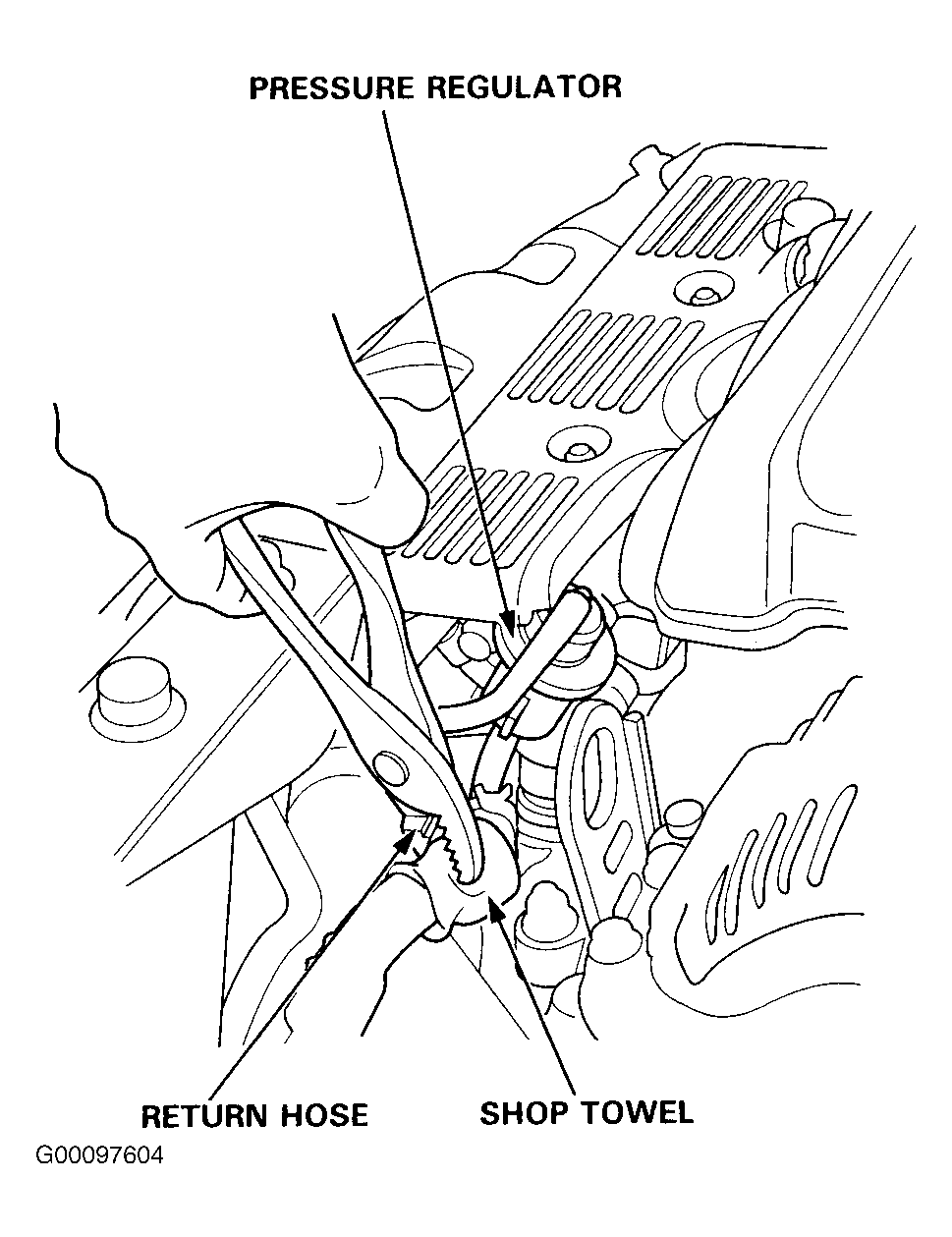 - Check that the fuel pressure rises when the vacuum hose from the regulator is disconnected again. If the fuel pressure did not rise, check to see if it rises with the fuel return hose lightly pinched. See Fig 2 .