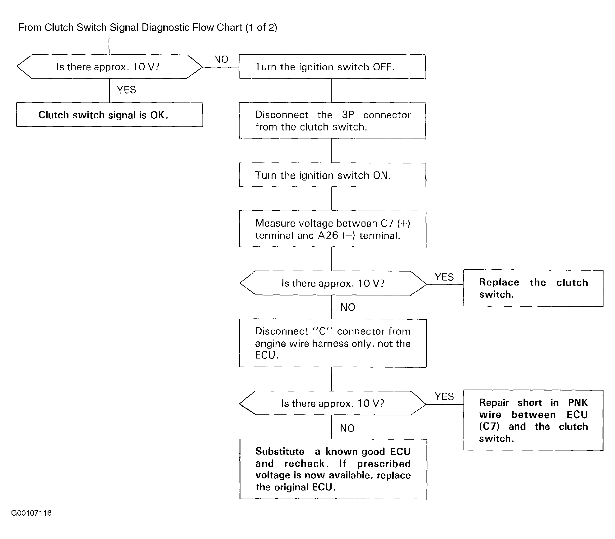 Fig 1: Clutch Signal Switch Diagnostic Flow Chart (1 Of 2)