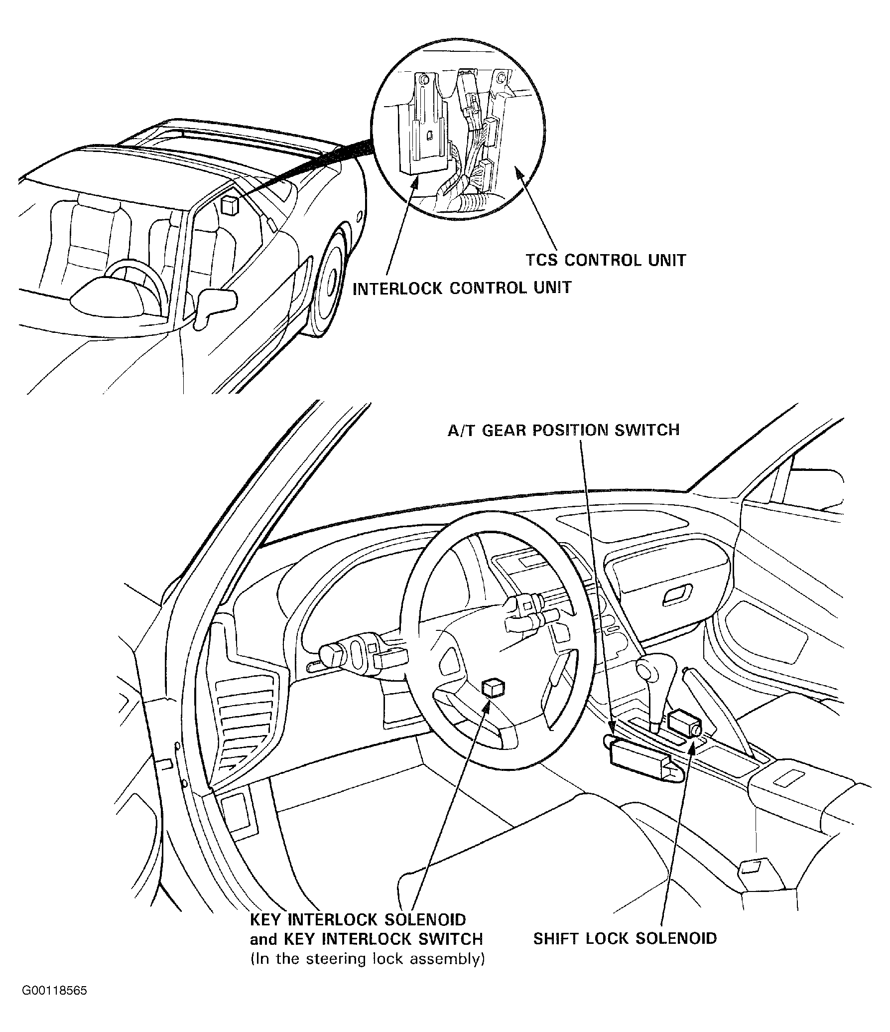 Home >> Acura >> 1992 >> NSX Automatic >> Repair and Diagnosis >> Transmission >> Automatic Trans >> Shift Interlock Systems >> Component Locations