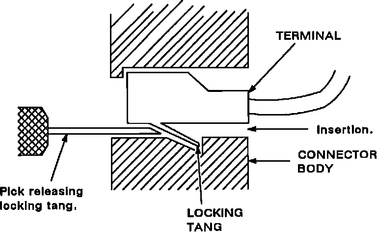 9. Inspect terminal and connector for damage. Repair as necessary, see TERMINAL REPAIR.
