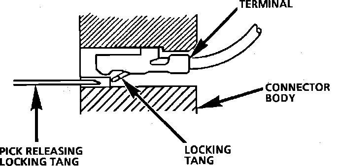6. Inspect the terminal and connector for damage. Repair as necessary, see TERMINAL REPAIR.