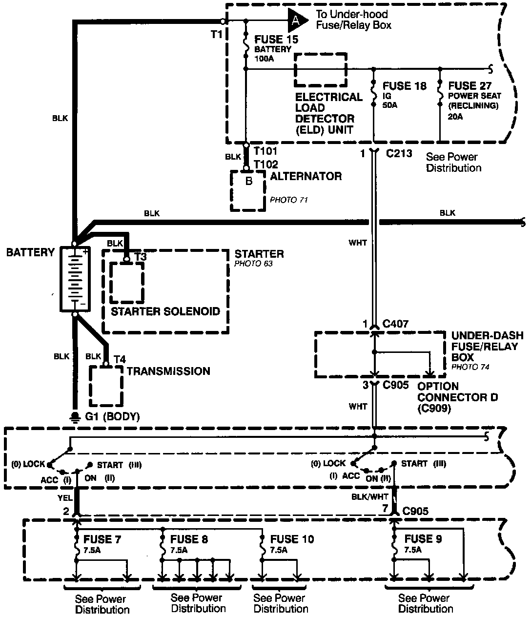 Power Distribution Schematics-From Battery To Ignition Switch, Fuses,and Relays: