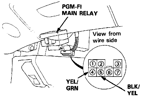 NOTE: If the car starts and continues to run, the Programmed Fuel Injection (PGM-FI) main relay is OK.