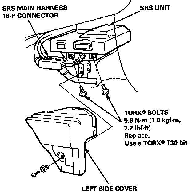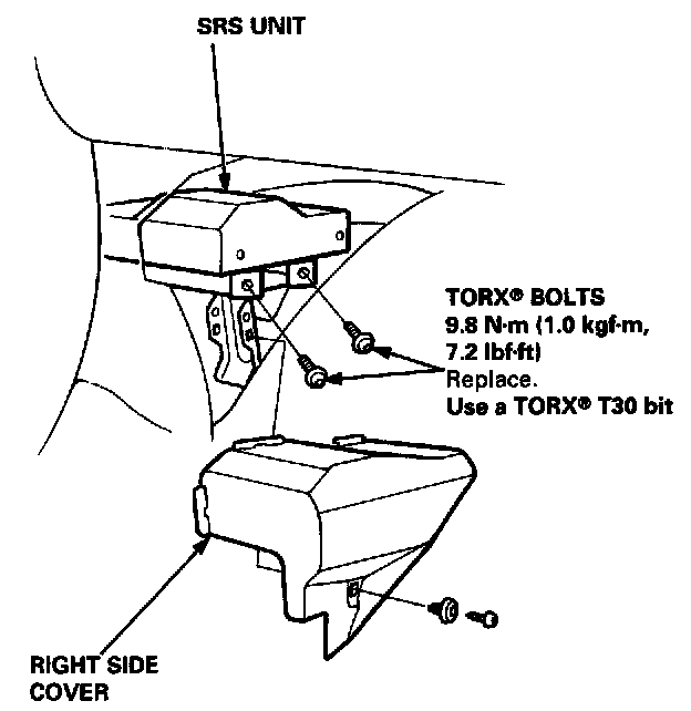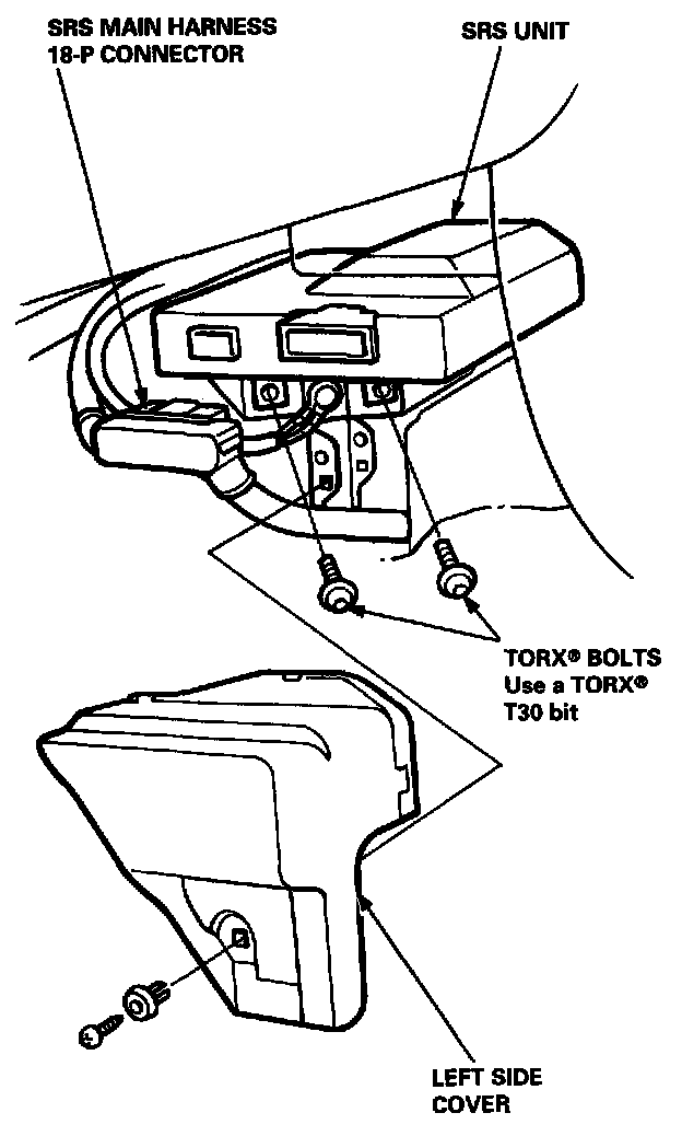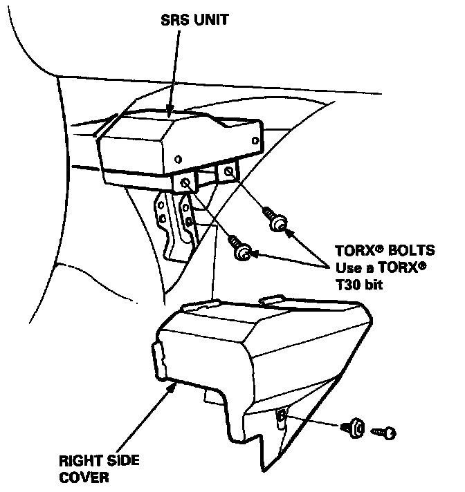 5. Remove the four TORX� bolts from the SRS unit, then pull out the SRS unit from the driver's side.