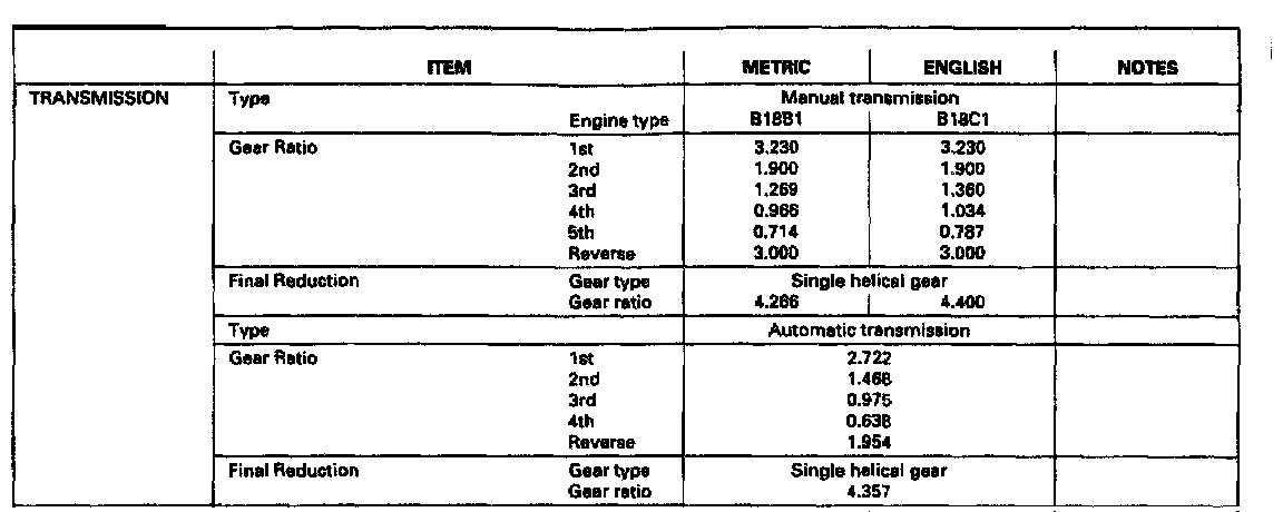 Manual/Automatic Transmission Gear Ratios: