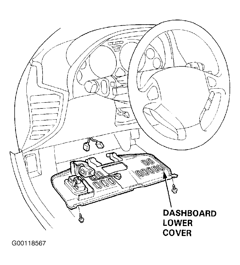 - Remove the dashboard lower cover, and disconnect the floor wire harness connectors. See Fig 1