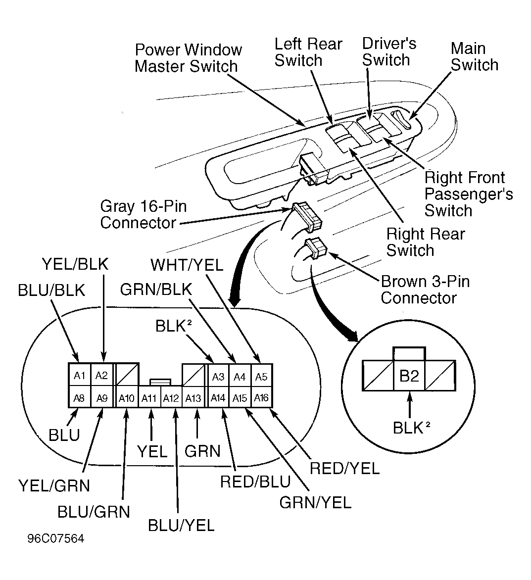 . If inputs tests are normal and driver's power window switch does not operate properly, replace power window master switch assembly.