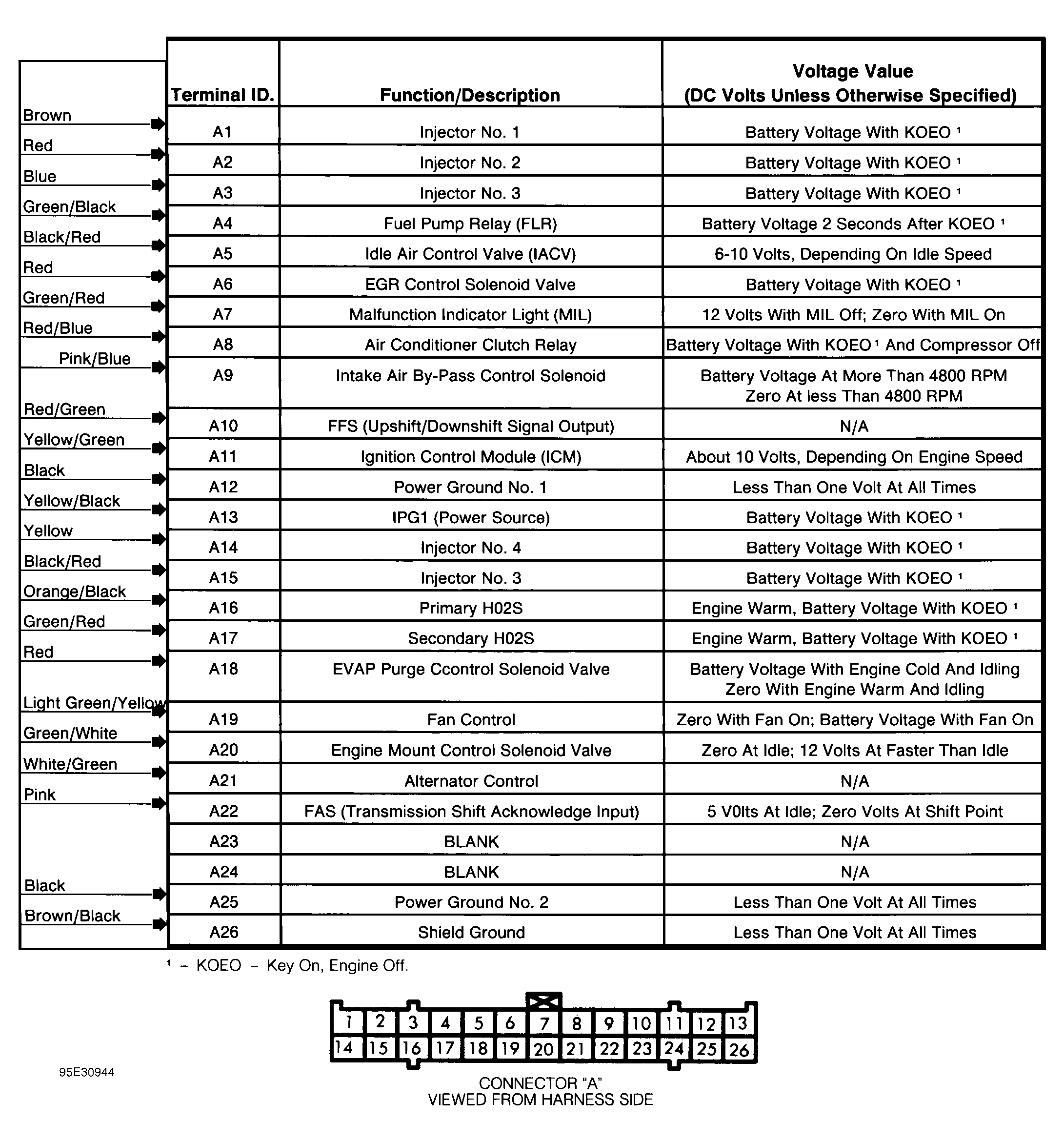 Pin voltage charts are supplied to reduce diagnostic time. Checking pin voltages at the Programmed Fuel Injection Engine Control Module (PGM-FI ECM) determines whether it is receiving and transmitting proper voltage signals. Diagnostic charts may also help determine if ECM harness is shorted or open. See Figure -Figure .