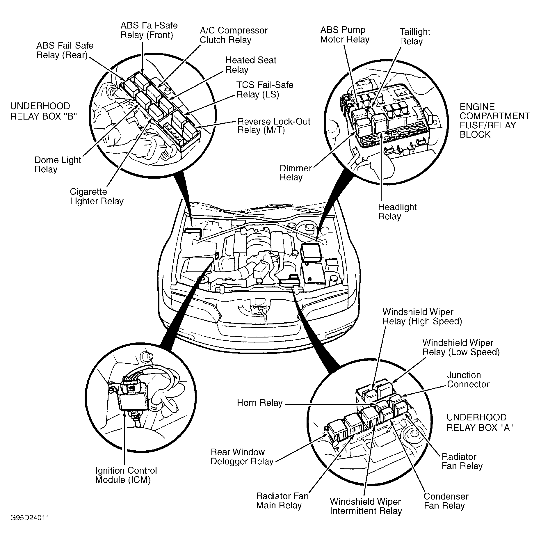 | Underhood Relay Box "A" | On Left Top Radiator Support, Near Battery. See Fig 1 . |