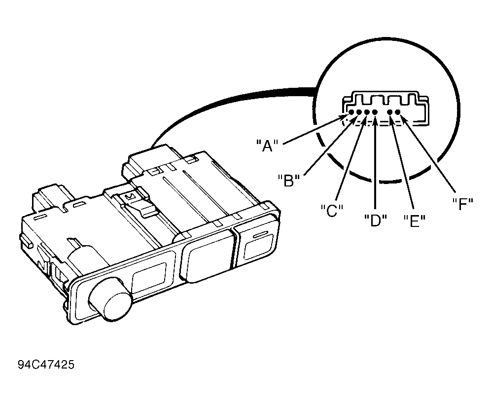 Remove connector from TCS switch. Check for continuity between terminals "A" and "B" with button pressed and no continuity with button released. See Fig 1 . Continuity should be present between terminals "C" and "D", and "E" and "F". If switch does not work as described, replace switch.