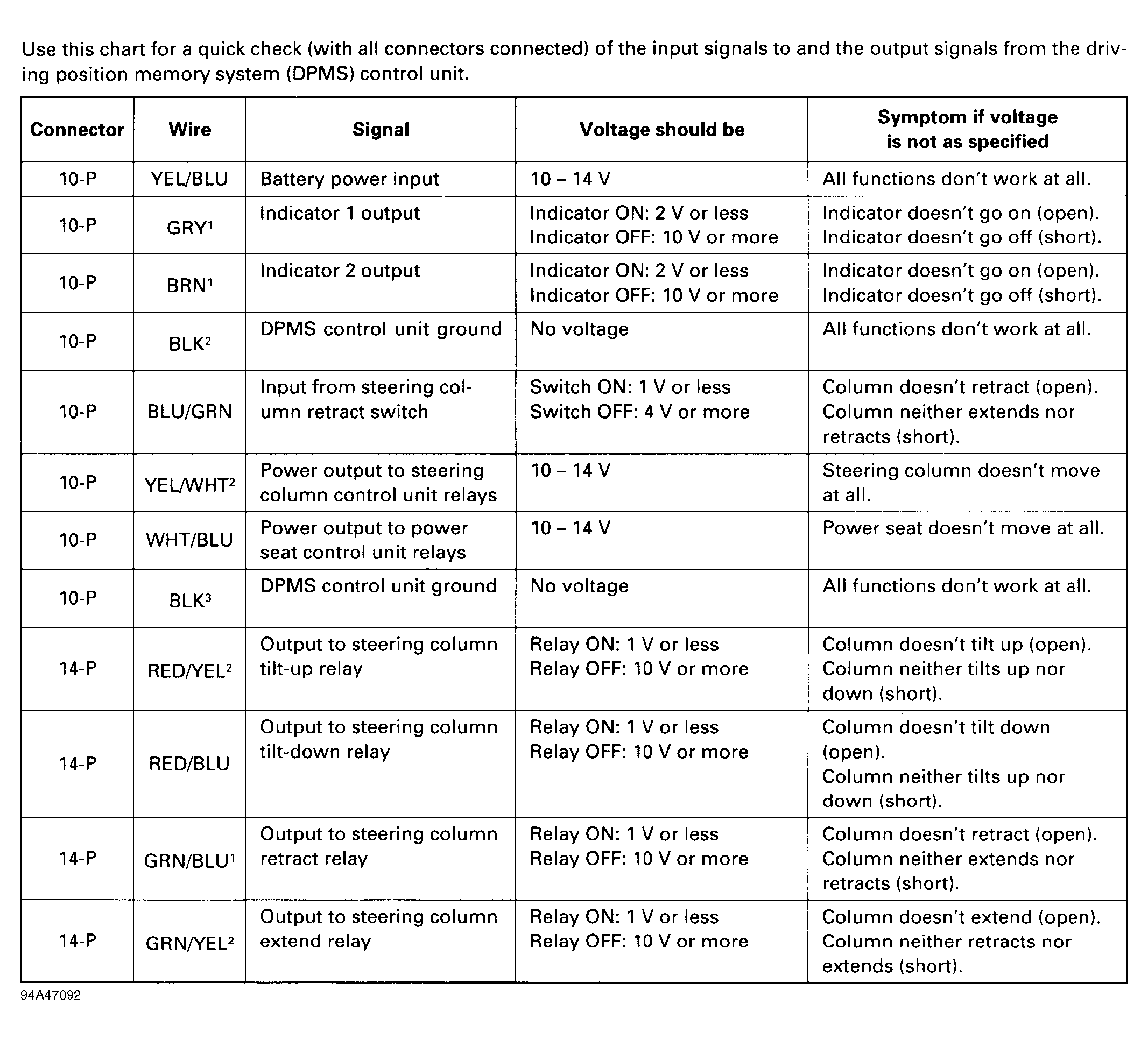 Seat control unit is located under front center of driver's seat. Driving Position Memory System (DPMS) Control Unit is located under left rear seat at left side. Unplug connectors. Check all connections and repair as necessary. See Fig 1