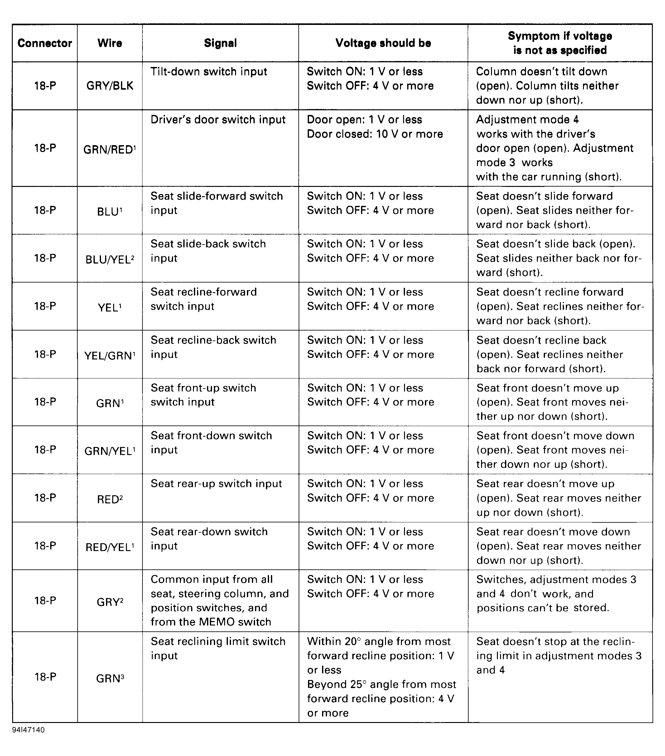 Driving Position Memory System Control Unit Inputs