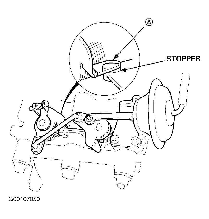 - Check that (A) of the IAB control valve is in close contact with the stopper when the vacuum hose is disconnected from the IAB control diaphragm. See Fig 4