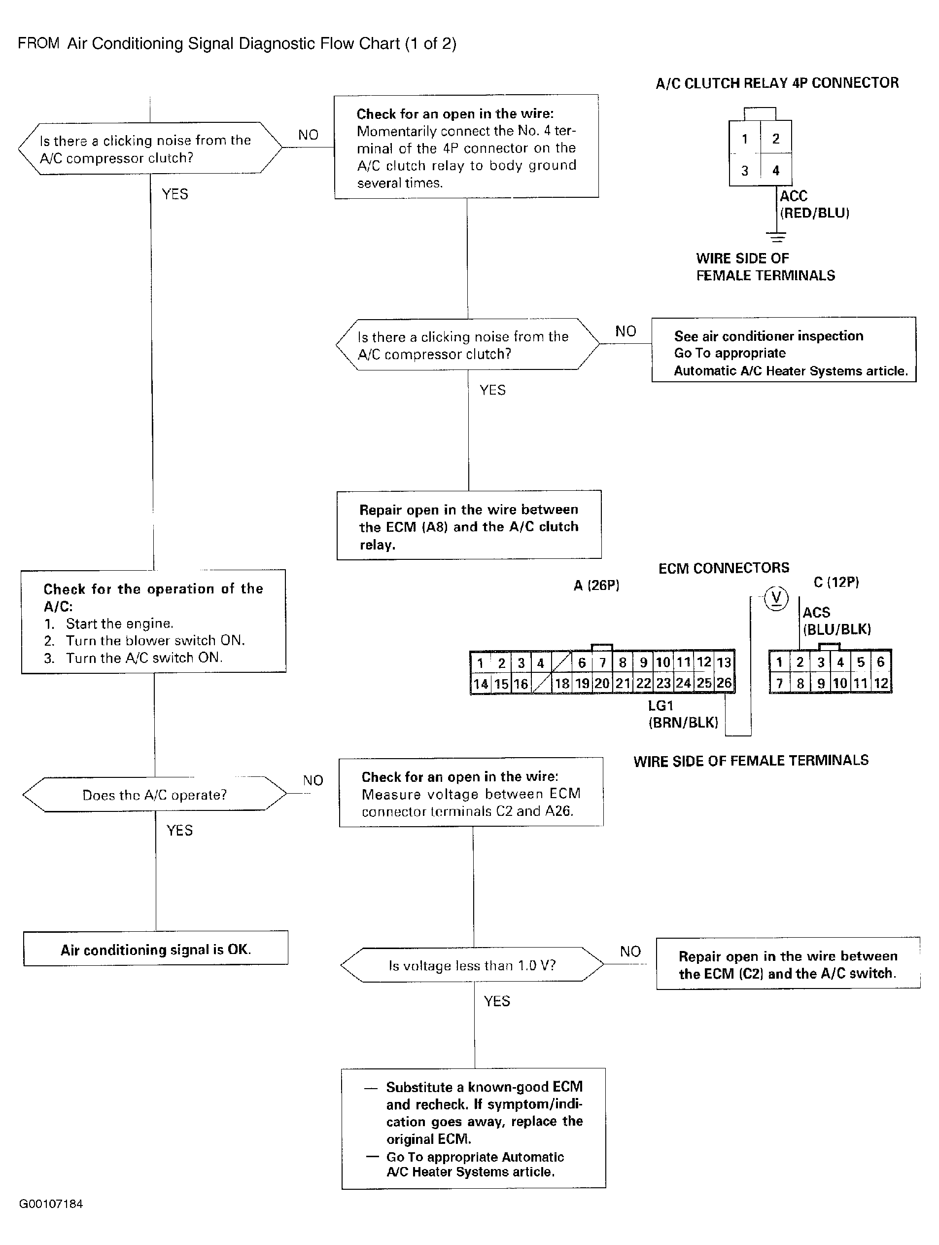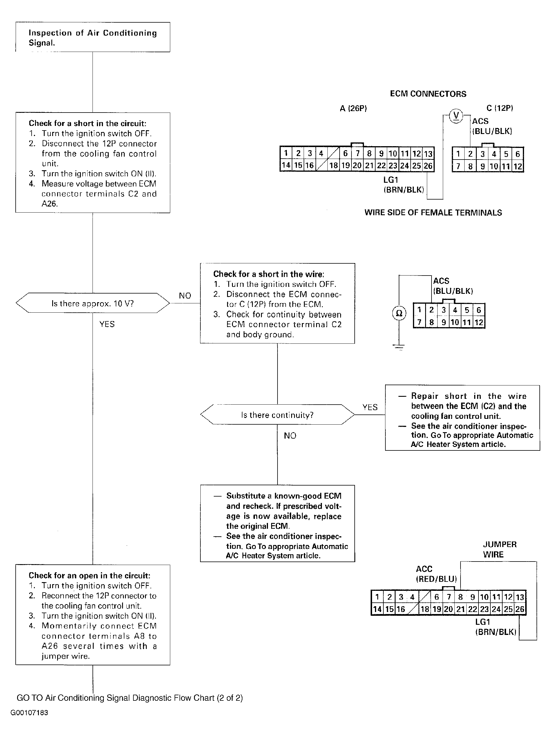 This signals the ECM when there is a demand for cooling from the air conditioning system. For troubleshooting of the air conditioning signal circuit, see Fig 1