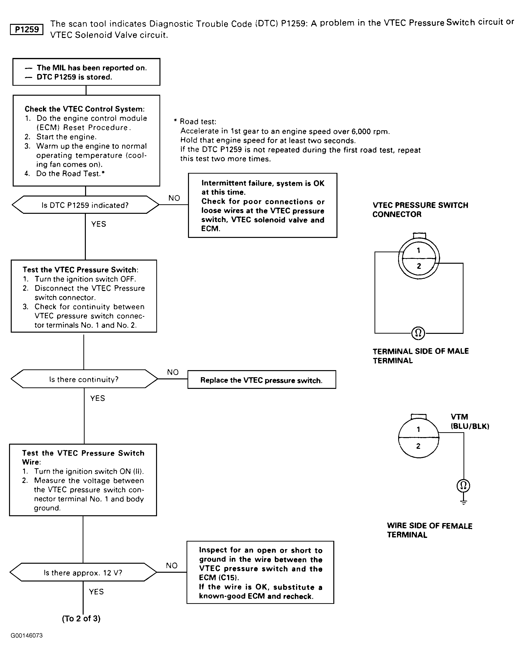 Fig 1: DTC 1259 - VTEC Pressure Switch Circuit Malfunction (1 Of 3)