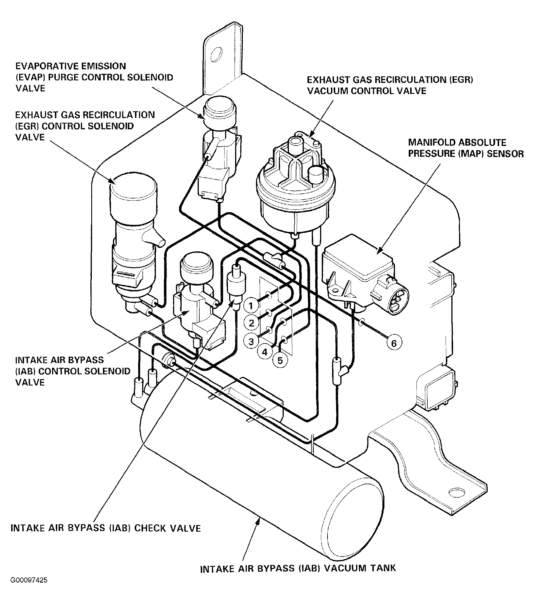 Intake Air Bypass (IAB) Vacuum Tank Under Control Box. See Fig 5 .