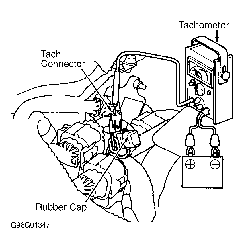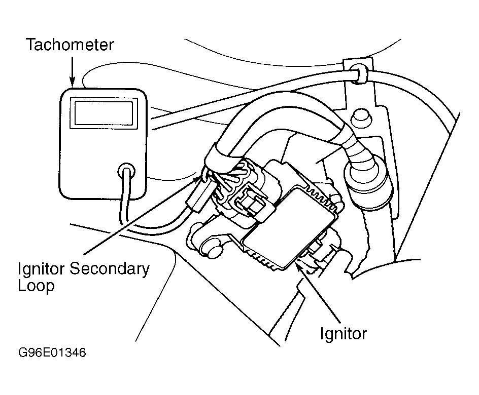 - Disconnect Idle Air Control (IAC) valve 2-pin connector. See Fig 1. Connect inductive tachometer to igniter secondary loop. See Fig 3. A tachometer signal can also be obtained from tachometer connector (located near igniter). See Fig 4.
