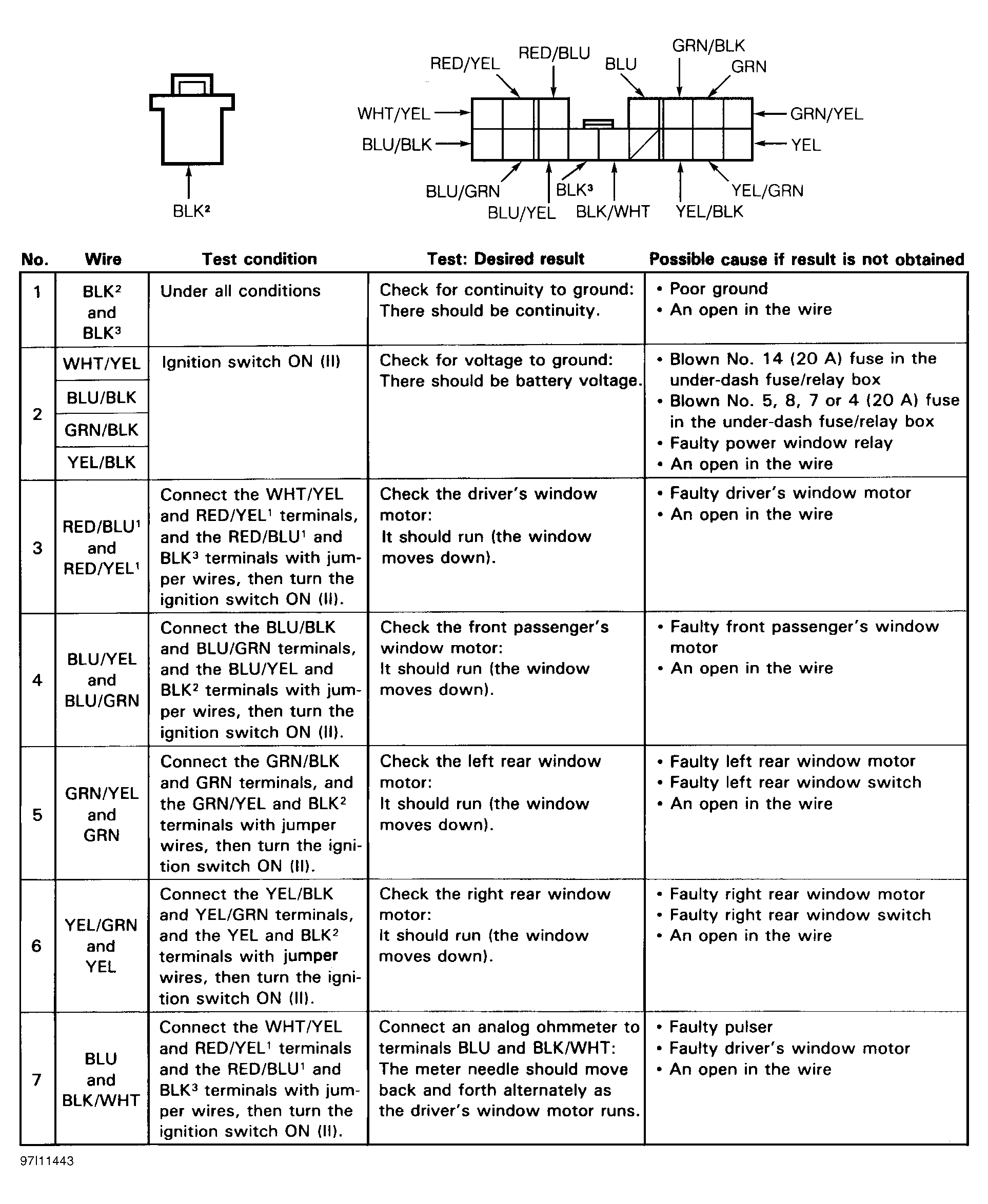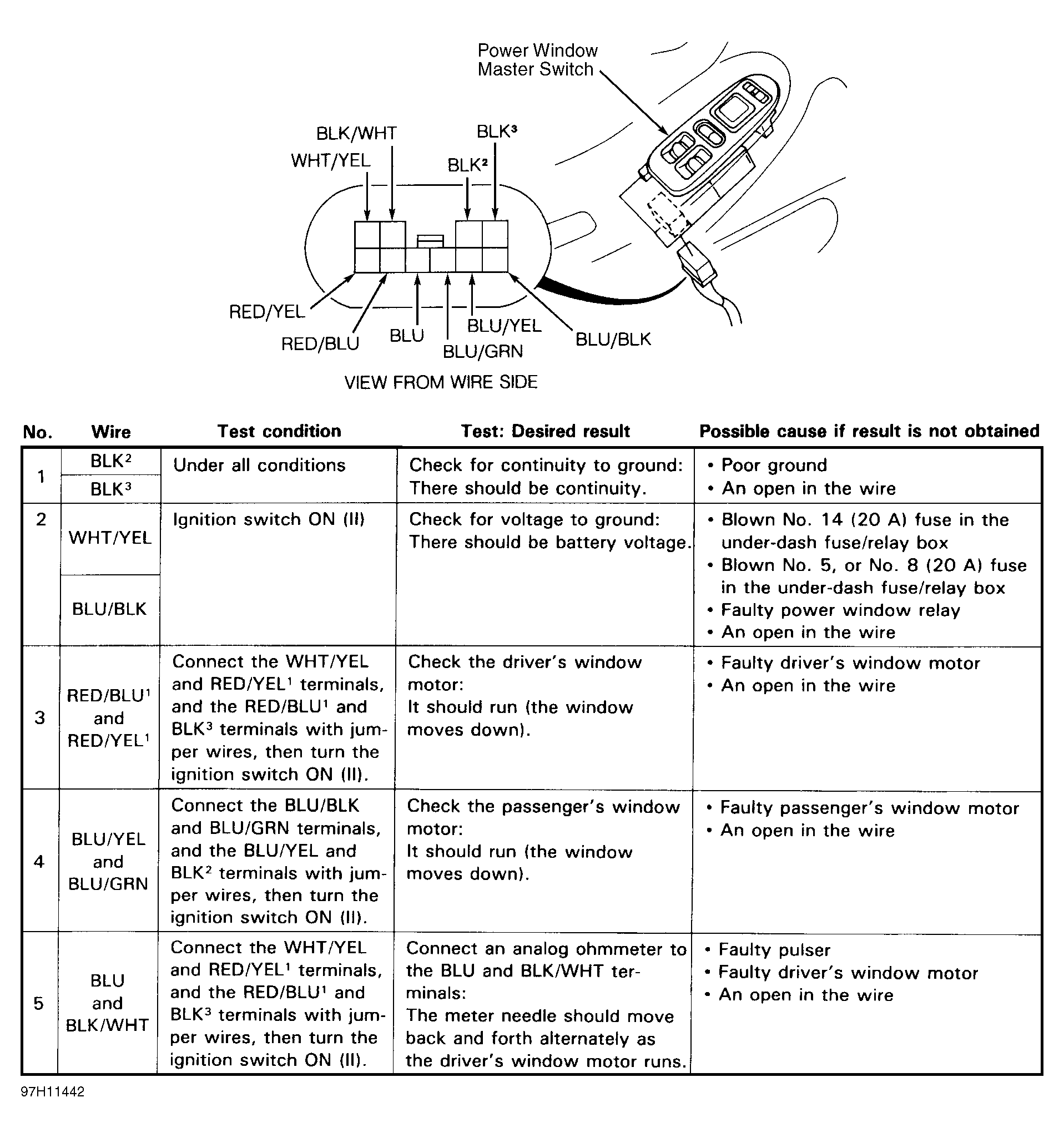 Home >> Acura >> 1997 >> Integra GS-R, 4D Sedan >> Repair and Diagnosis >> Body & Frame >> Power Windows >> Component Tests >> Power Window Switch Test >> Master Switch