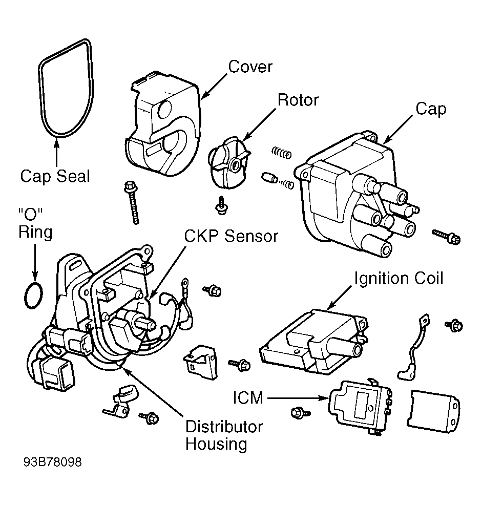 - Mark spark plug wires, distributor housing and cylinder head for installation reference. Disconnect distributor 10-pin connector and spark plug wires. Remove hold-down bolts and distributor.