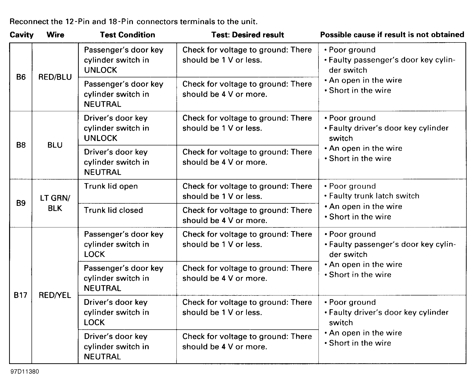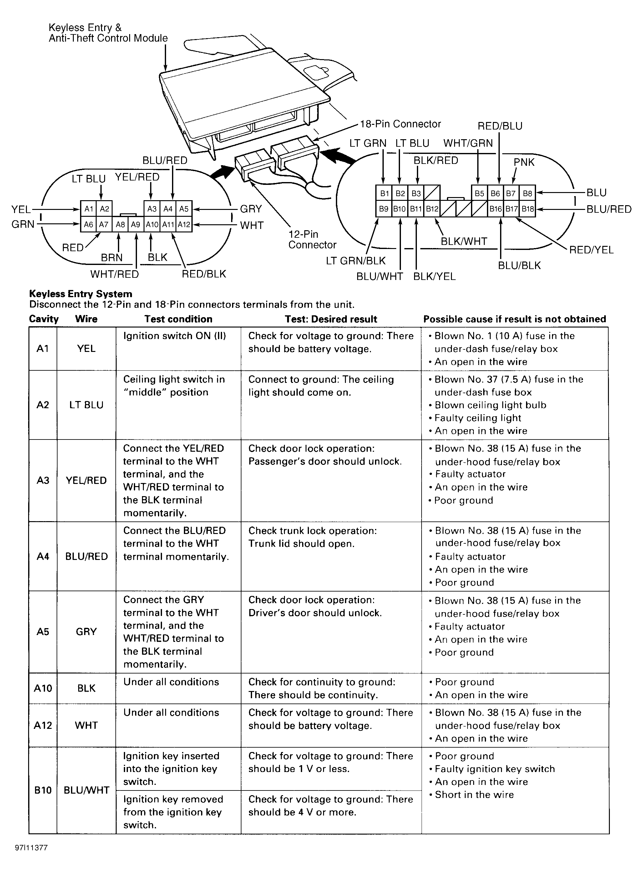 Home >> Acura >> 1998 >> 2.3CL Automatic >> Repair and Diagnosis (Single Page) >> Accessories & Equipment >> Anti-Theft Systems >> Anti-Theft & Keyless Entry Systems >> System Testing >> System Control Unit Input Tests