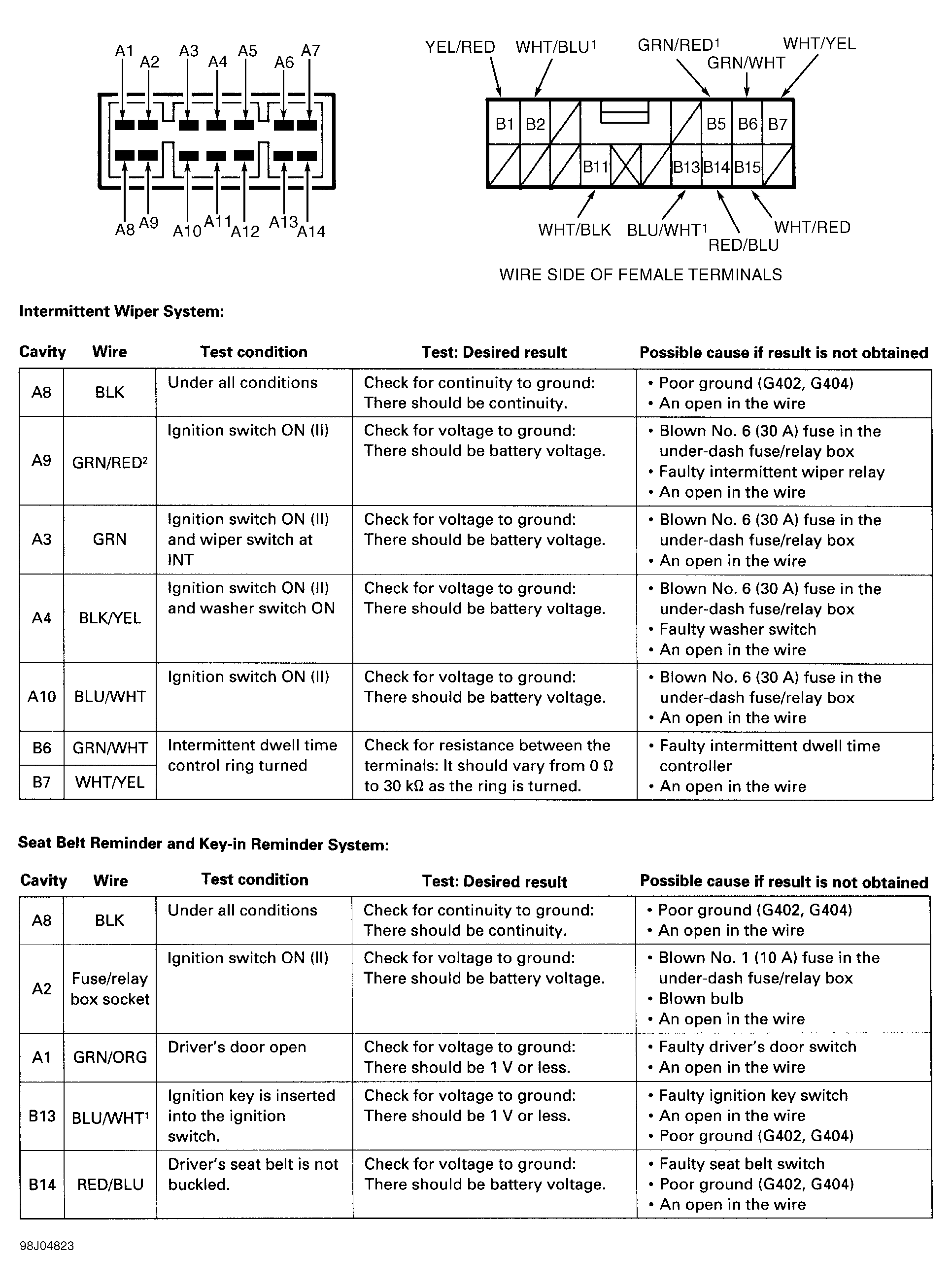 Disable air bag. See appropriate AIR BAG RESTRAINT SYSTEMS article in the ACCESSORIES/SAFETY EQUIPMENT section. Remove driver's side kick panel. Disconnect ICU 16-pin connector. Remove ICU from underdash fuse/relay box. Inspect connector terminals and ICU socket for damage. Test each circuit of ICU connector for continuity or voltage as indicated. See Fig 1 , Fig 2 and Fig 3 . Correct any problems found. If no problems are found, replace ICU.