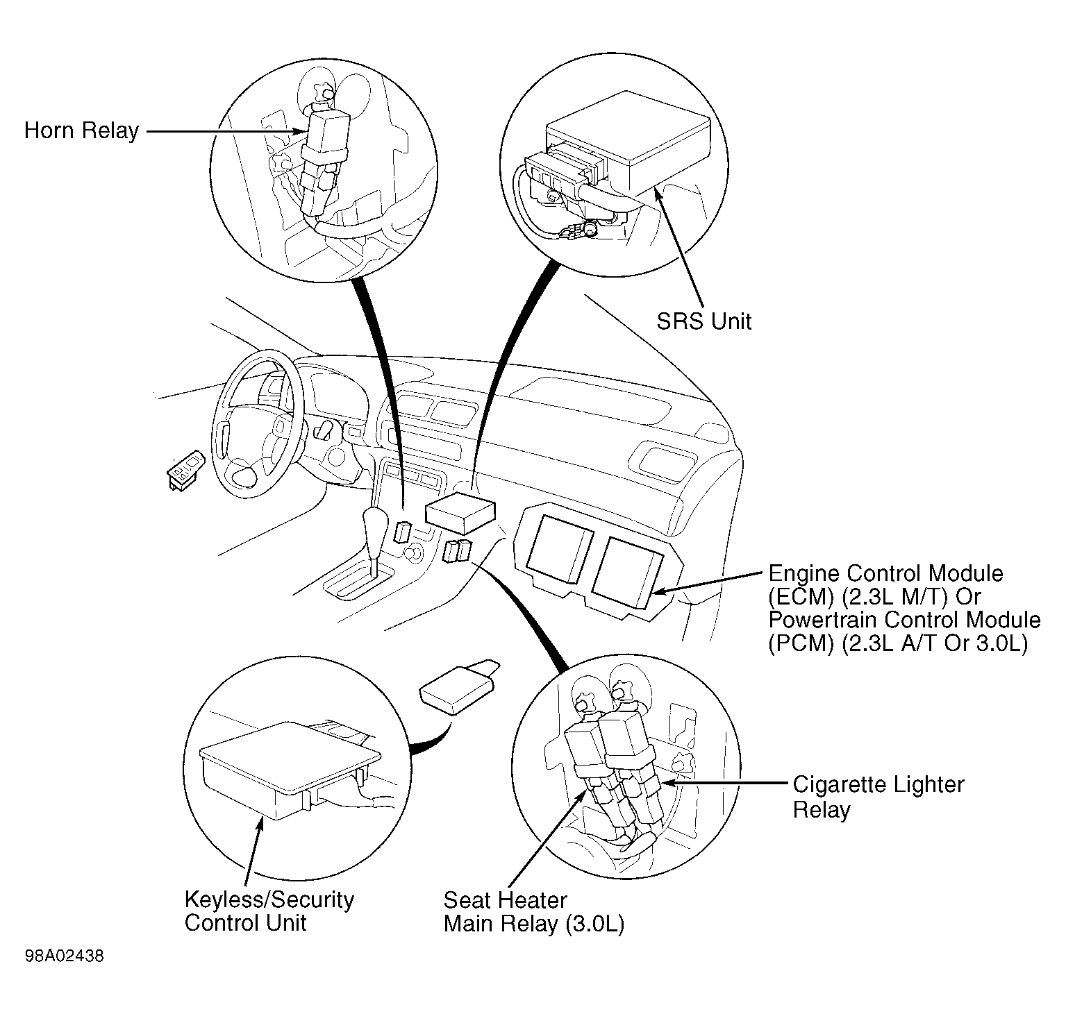 | SRS Unit | Below center of dash. See Figure. |