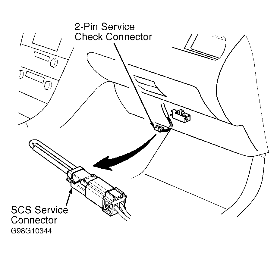 - Connect SCS Service Connector (07PAZ-0010100) or Honda PGM Tester to 2-pin service check connector located under glove box. See Fig 1 . Without depressing brake pedal, turn ignition switch to ON position (without starting engine). ABS indicator light comes on for 2-second bulb check. Record blinking ABS indicator light sequence. See Figure .