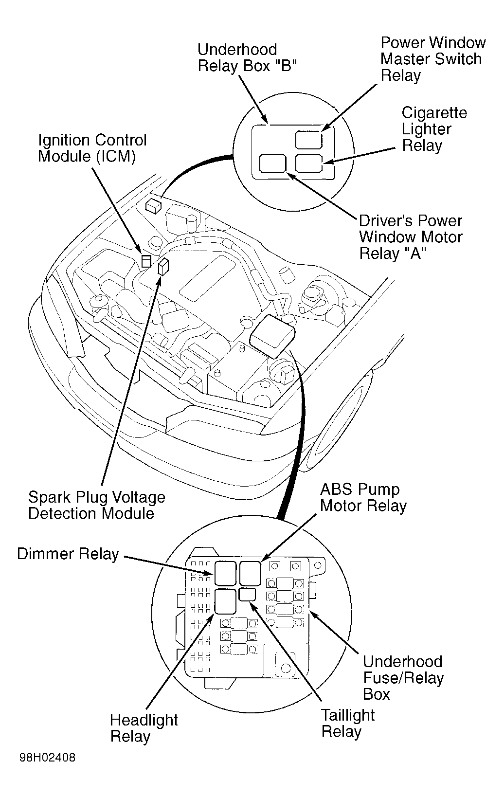 | Ignition Control Module (ICM) | On right side of engine compartment. See Figure . |
