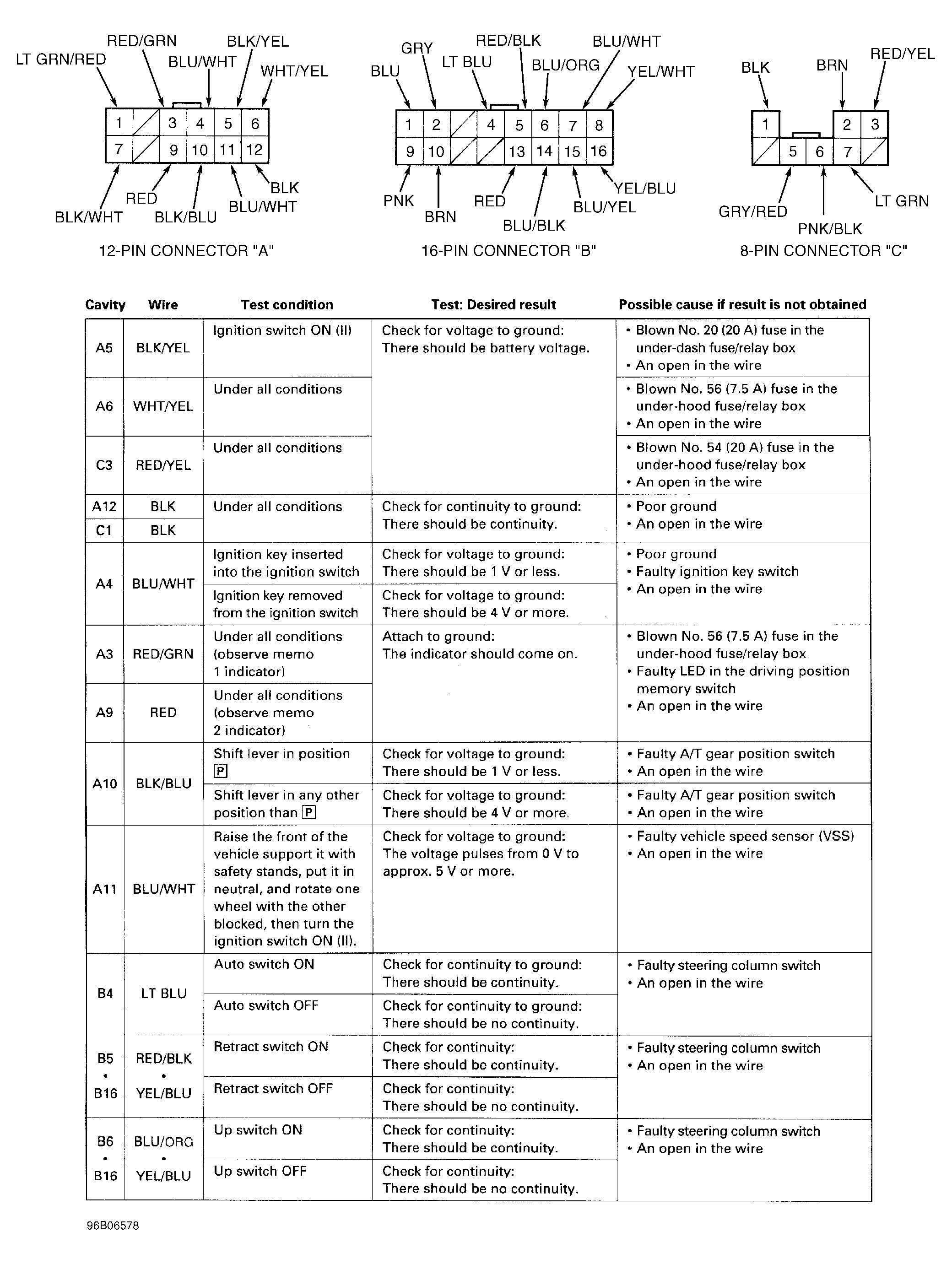 Steering column control unit is located behind dashboard lower cover to right of steering column. See DASHBOARD LOWER COVER under REMOVAL & INSTALLATION. Disconnect steering column control unit connectors and check for bent, loose or corroded terminals and repair as required. See Fig 1 and Fig 2 .
