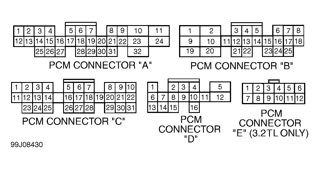 1. Disconnect 4-pin connector from generator. Turn ignition on. Backprobing, measure voltage between PCM 25-pin connector terminal No. 20 (Brown/Black wire) and PCM 31-pin connector terminal No. 5 (White/Red wire). See Figure. If voltage is not about 5 volts, go to next step. If voltage is about 5 volts, go to step  3.