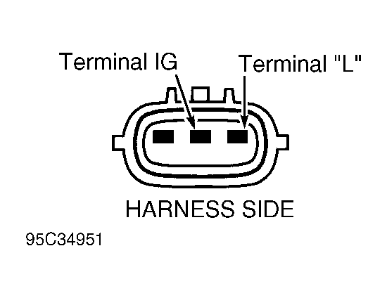- Disconnect generator wiring harness connector. Turn ignition on. Connect voltmeter between terminals "L" (White/Green wire) or "IG" (Black/Yellow wire) and ground. See Figure. If no voltage exists, check for open in Black/Yellow wire or White/Green wire.