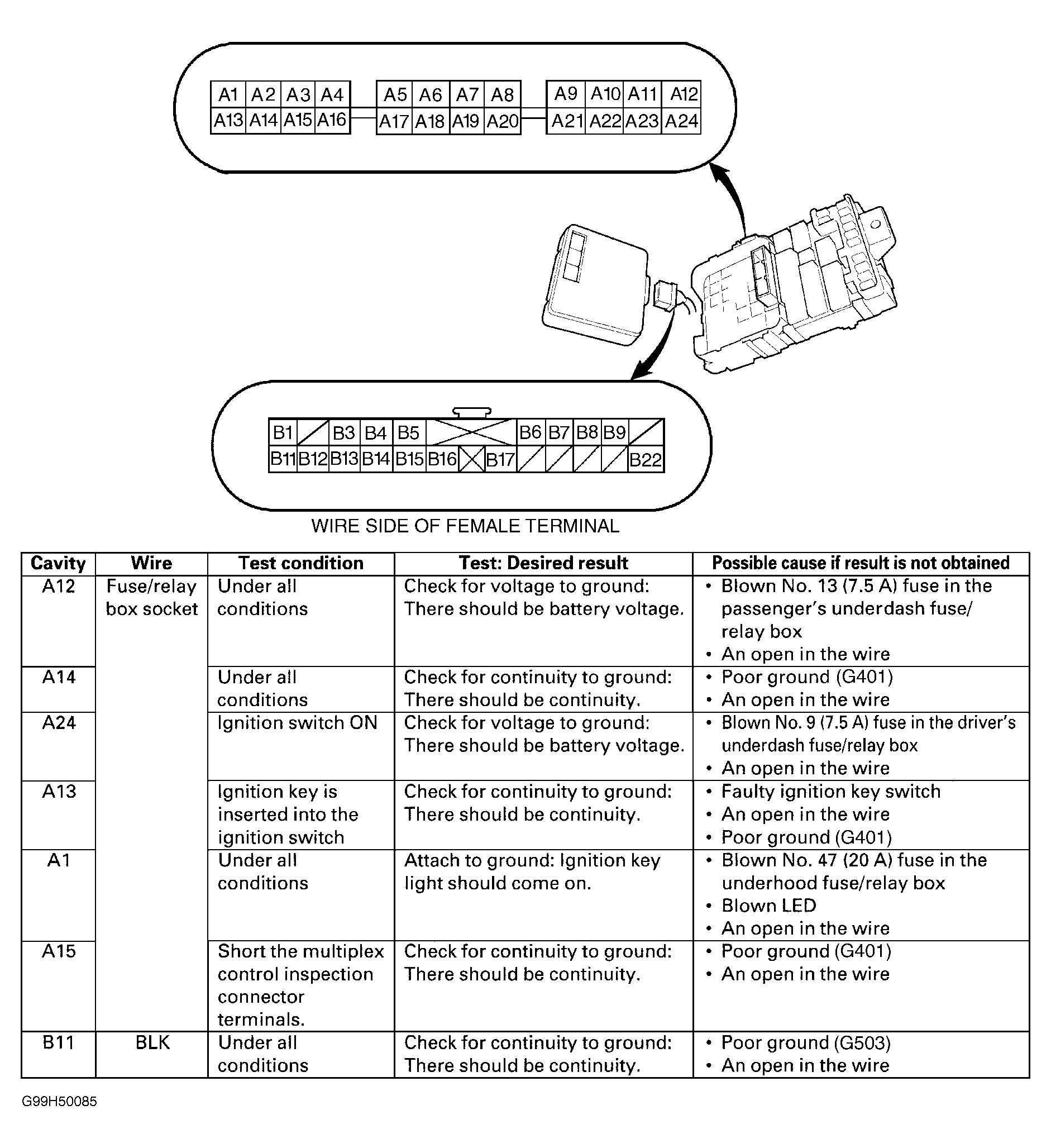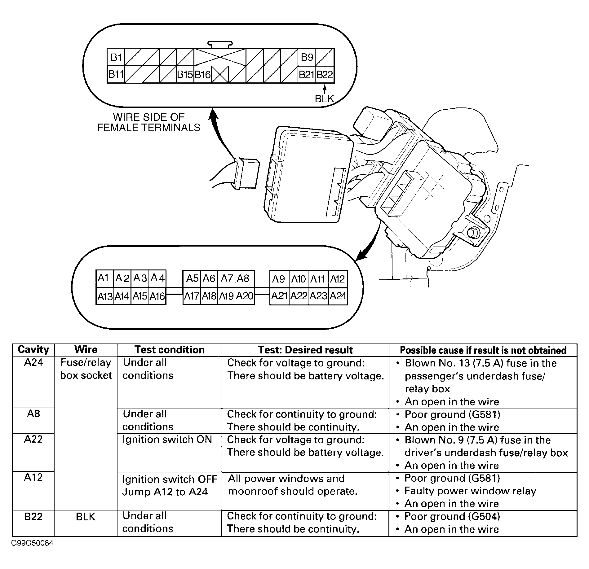 - Turn ignition off. Remove driver's underdash fuse/relay box. See DRIVER'S UNDERDASH FUSE/RELAY BOX under REMOVAL & INSTALLATION. Remove driver's multiplex control unit from driver's underdash fuse/relay box. Remove passenger's underdash fuse/relay box. See PASSENGER'S UNDERDASH FUSE/RELAY BOX under REMOVAL & INSTALLATION. Remove passenger's door multiplex control unit from passenger's underdash fuse/relay box. Go to next step.
