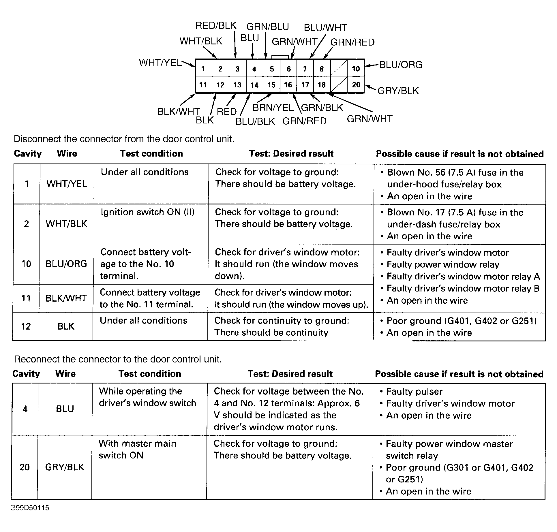 . Repair as necessary and recheck system operation. If driver's door multiplex control unit tests are okay, go to next step.