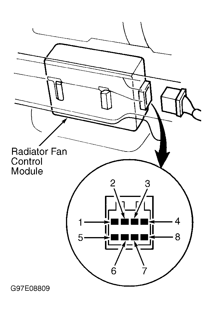 Fig 1: Identifying Radiator Fan Control Module Connector Terminals (2.3CL & 3.0CL)