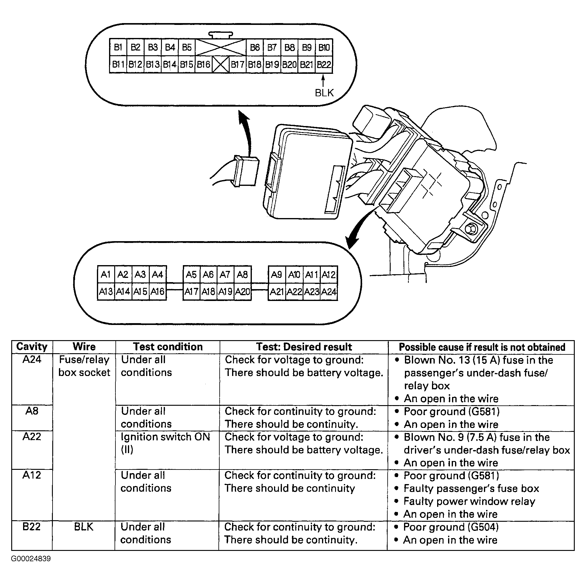 - Turn ignition off. Remove driver's underdash fuse/relay box. See DRIVER'S UNDERDASH FUSE/RELAY BOX under REMOVAL & INSTALLATION. Remove driver's multiplex control unit from driver's underdash fuse/relay box. Remove passenger's underdash fuse/relay box. See PASSENGER'S UNDERDASH FUSE/RELAY BOX under REMOVAL & INSTALLATION. Remove passenger's door multiplex control unit from passenger's underdash fuse/relay box. Go to next step.