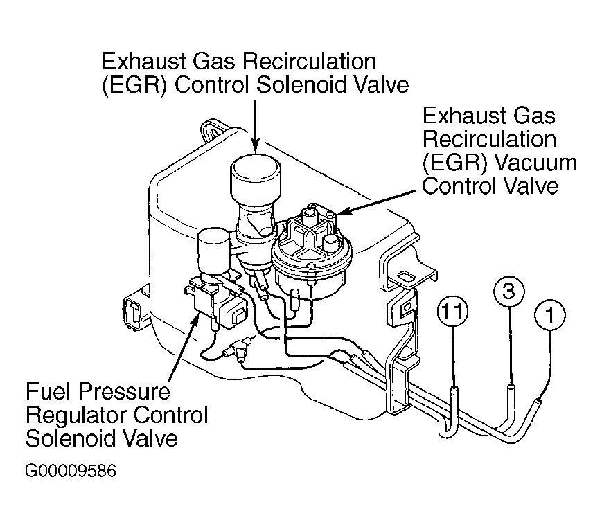 - Disconnect control box Gray 4-pin connector. Check for vacuum at fuel pressure regulator vacuum hose. If manifold vacuum is not present, check vacuum hoses between intake manifold, fuel pressure regulator control solenoid valve and fuel pressure regulator for leaks or clogging. Repair or replace as necessary. If hoses are okay, replace pressure regulator control solenoid valve. If manifold vacuum is present, go to next step.