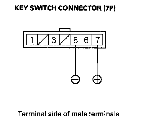 2. Connect the No. 7 terminal of the key switch connector to the battery positive terminal, and connect the No. 5 terminal to the battery negative terminal.