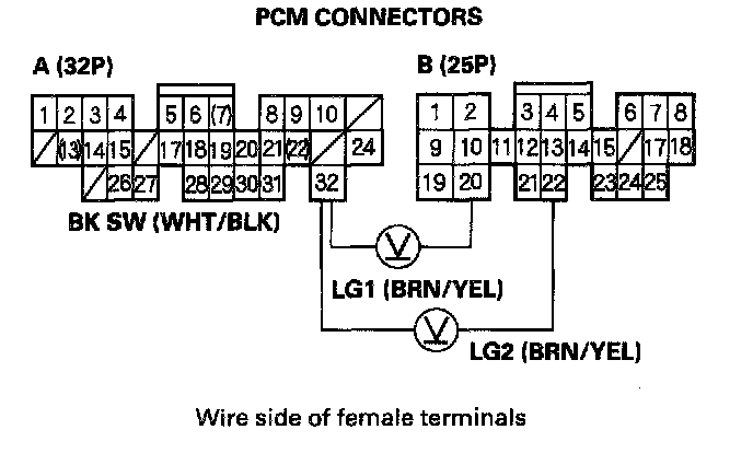 6. Reconnect the A (32P) and B (25P) connectors to the PCM.