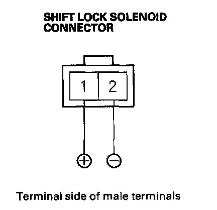 NOTE: Do not connect the No. 2 terminal to the battery positive terminal or you will damage the diode inside the shift lock solenoid.