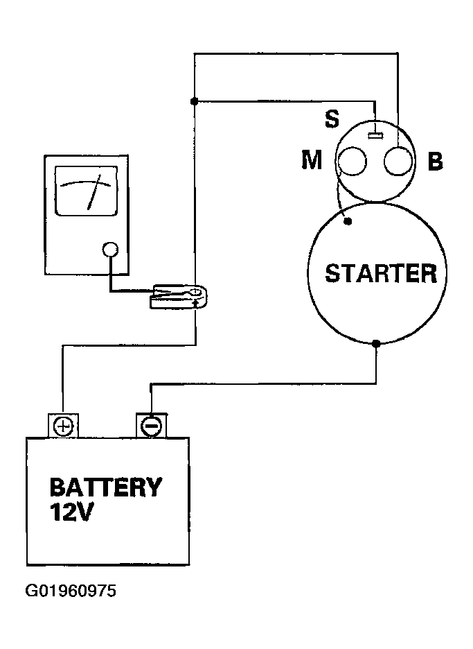 8. If the electric current and motor speed meet the specifications when the battery voltage is at 11.5 V, the starter is working properly.