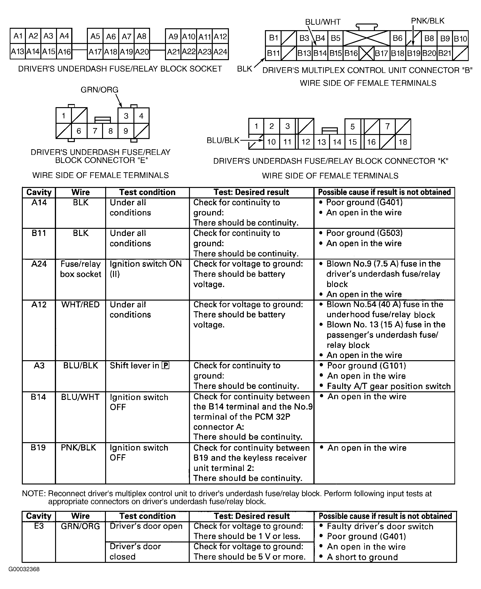 Home >> Acura >> 2002 >> 3.2CL Base >> Repair and Diagnosis >> Body & Frame >> Mirrors >> Driver's Position Memory System >> System Tests >> Driver's Multiplex Control Unit