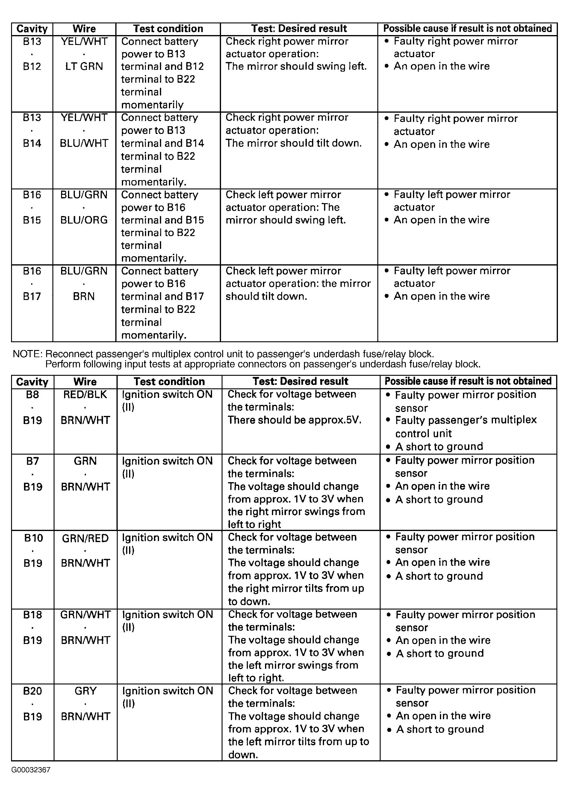Home >> Acura >> 2002 >> 3.2CL Base >> Repair and Diagnosis >> Body & Frame >> Mirrors >> Driver's Position Memory System >> System Tests >> Passenger's Multiplex Control Unit